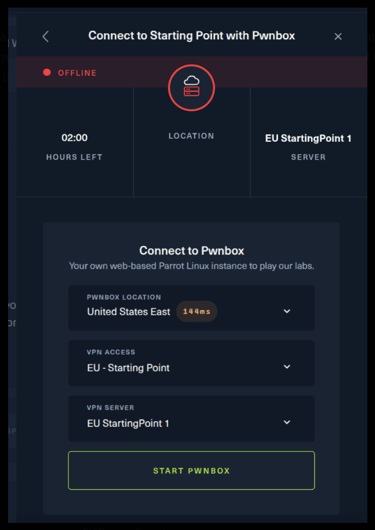 I need to mention that if you are using the first option (Pwnbox) you can follow this guide, regardless if you are using Windows, Mac OS or Linux. This is the case, because a new tab will open in your web browser and there you can interact with the target machine.