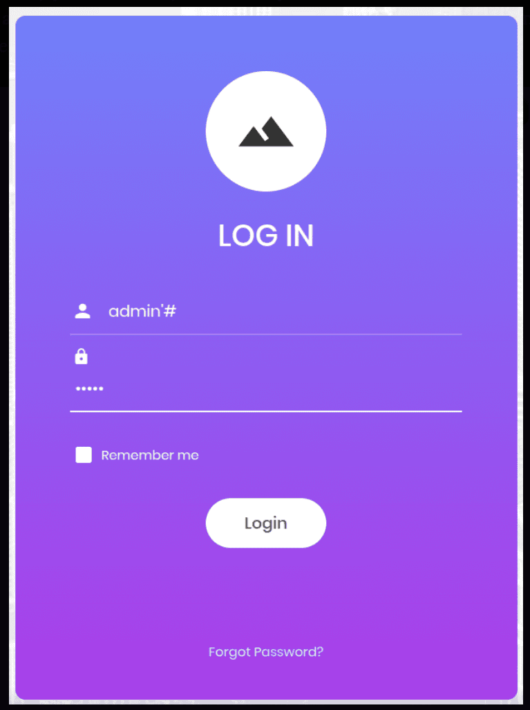 Let’s use some SQL Injection techniques. Just type admin’# as the username and give any password that you like. The password does not matter. So in a sense, after the admin the SQL server intepreters the following statement as a comment and therefore it does not need a password.