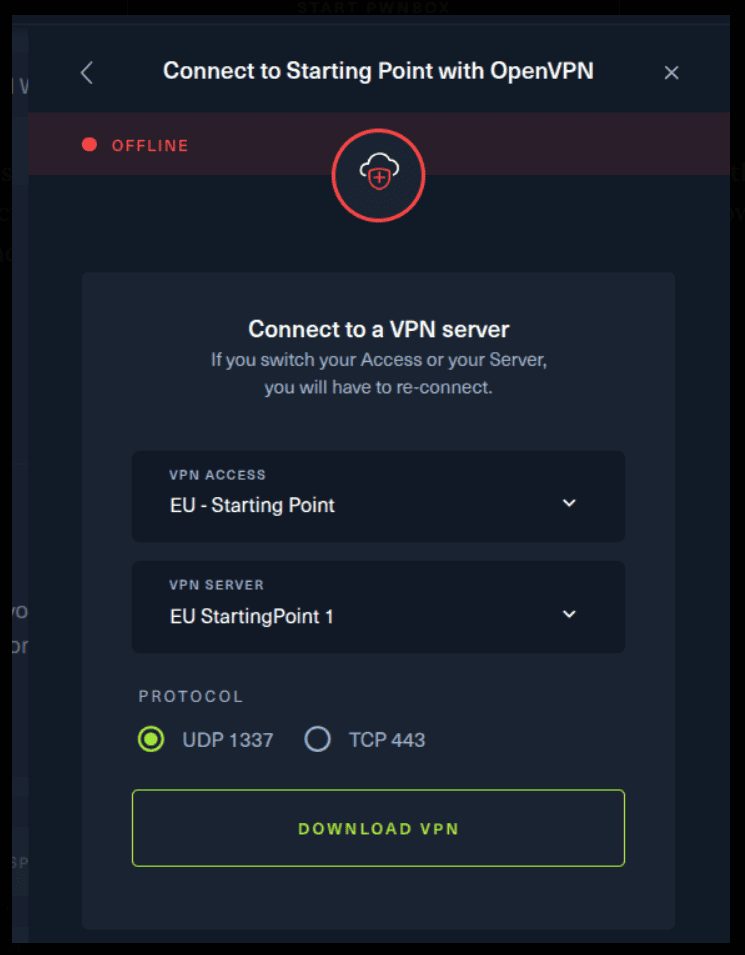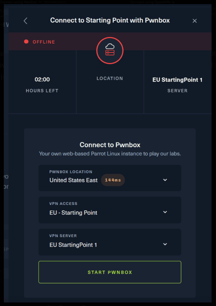 There are 2 options available to connect to our machine. First using Pwnbox or secondly using OpenVPN.